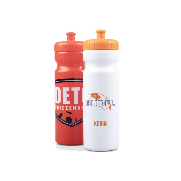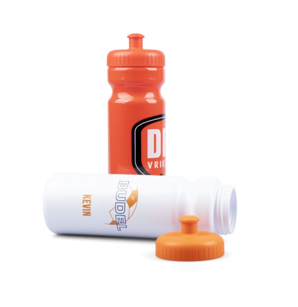 Onze bidons hebben een inhoud van 750 ml en zijn zeer geschikt voor vele soorten sporten, van hardlopen tot voetbal. De bidons zijn in een kleine hoeveelheid te bestellen, hierdoor kan je gemakkelijk bidons personaliseren voor het gewenste doel. Heb je bijvoorbeeld een hardloopwedstrijd? Print dan niet alleen je bedrijfslogo maar ook de datum voor een blijvende herinnering!
