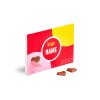 Je kan op vele manieren uiten hoe blij je bent met jouw klanten, collega’s, medewerkers of relaties, maar hoe leuk is het om dit te doen met een chocolade hartjes mailing! Het kartonnen chocolade doosje heeft een formaat van 208 x 146 x 12 mm en voorzien wij van een full-color print aan de gehele buiten zijde. We drukken deze chocolade hartjes door op luxe 300 grams Invercote papier en voorzien elk doosje van een transparant PP, recyclebare inlay. Elke inlay bevat 8 Gubor Fairtrade melkchocolade hartjes van ongeveer 44 gram per stuk. De chocolade hartjes zijn ruim 3 maanden houdbaar in verpakking.