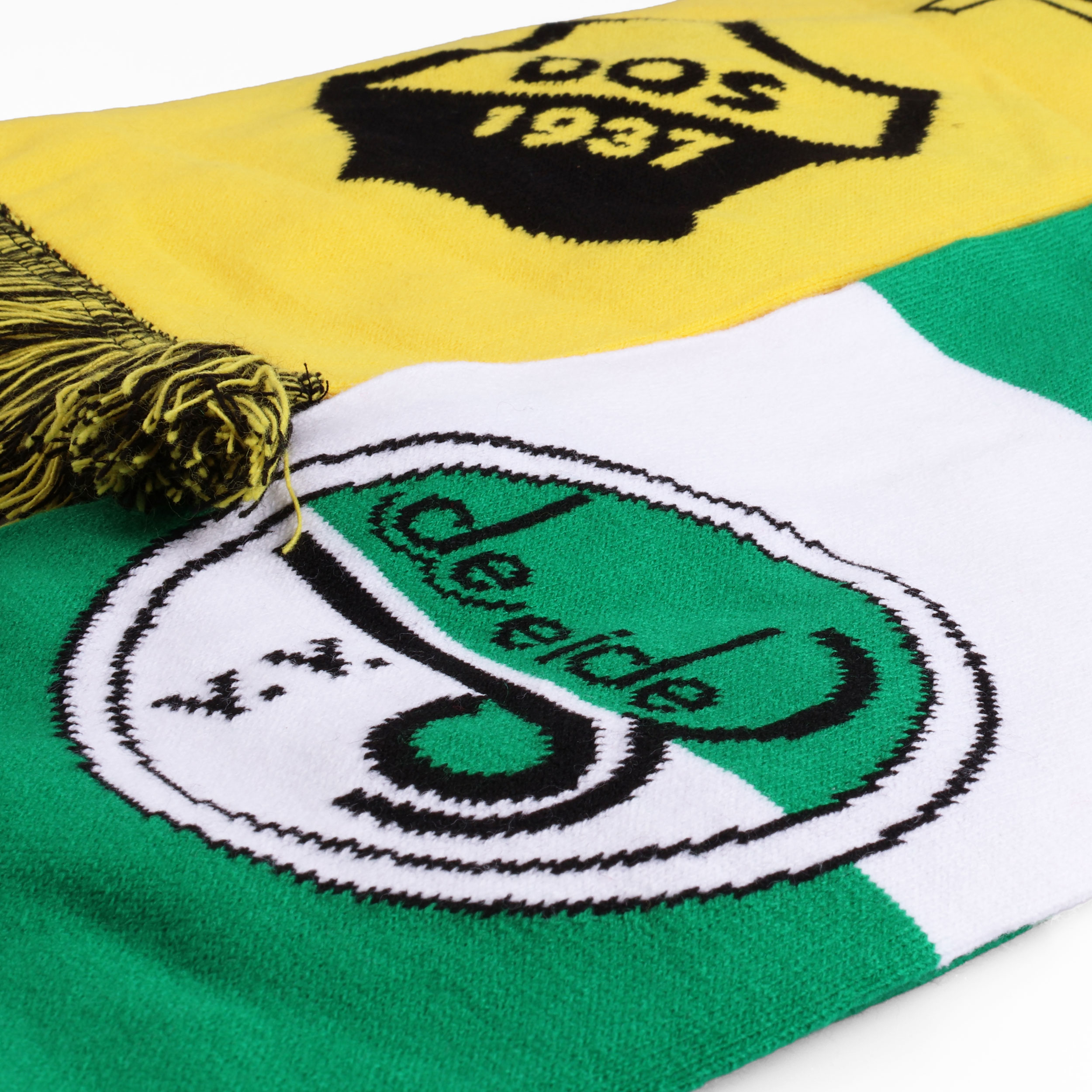 Zo maken wij deze voetbalsjaals bijvoorbeeld met 2 clublogo’s voor bepaalde wedstrijden, zoals bekerwedstrijden, finale’s of vriendschappelijke wedstrijden. Wij breien deze voetbalsjaals voor vele clubs en onze ontwerpers weten precies wat er voor nodig is om de perfect sjaals te ontwerpen.