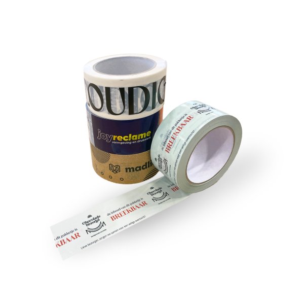 Goedkope tape bedrukken? Wij bedrukken de allergoedkoopste tape van Nederland. Hoe leuk is het als jij jouw pakketjes kunt voorzien van een unieke print! Personaliseer al jouw pakketten, voorzie deze van een leuke tape en maar van jouw dozen een waar festijn! Je kunt het zo gek niet bedenken, wij drukken het! Goedkope tape bedrukken met jouw eigen ontwerp? Wij drukken verschillende soorten tape en we kunnen al deze tape bedrukken met 1, 2 of 3 kleuren. Onze tape is de goedkoopste van Nederland en is al beschikbaar vanaf 36 rollen! We hebben 4 verschillende kwaliteiten: extreem sterke PVC tape, PP Solvent tape, Hot Melt tape en bedrukte ECO Papieren tape. Wist je dat het zelfs mogelijk is dat wij het ontwerp gratis voor jou maken? De goedkoopste tape bedruk je bij Joy Reclame! Hierom kopen bedrijven bij ons: