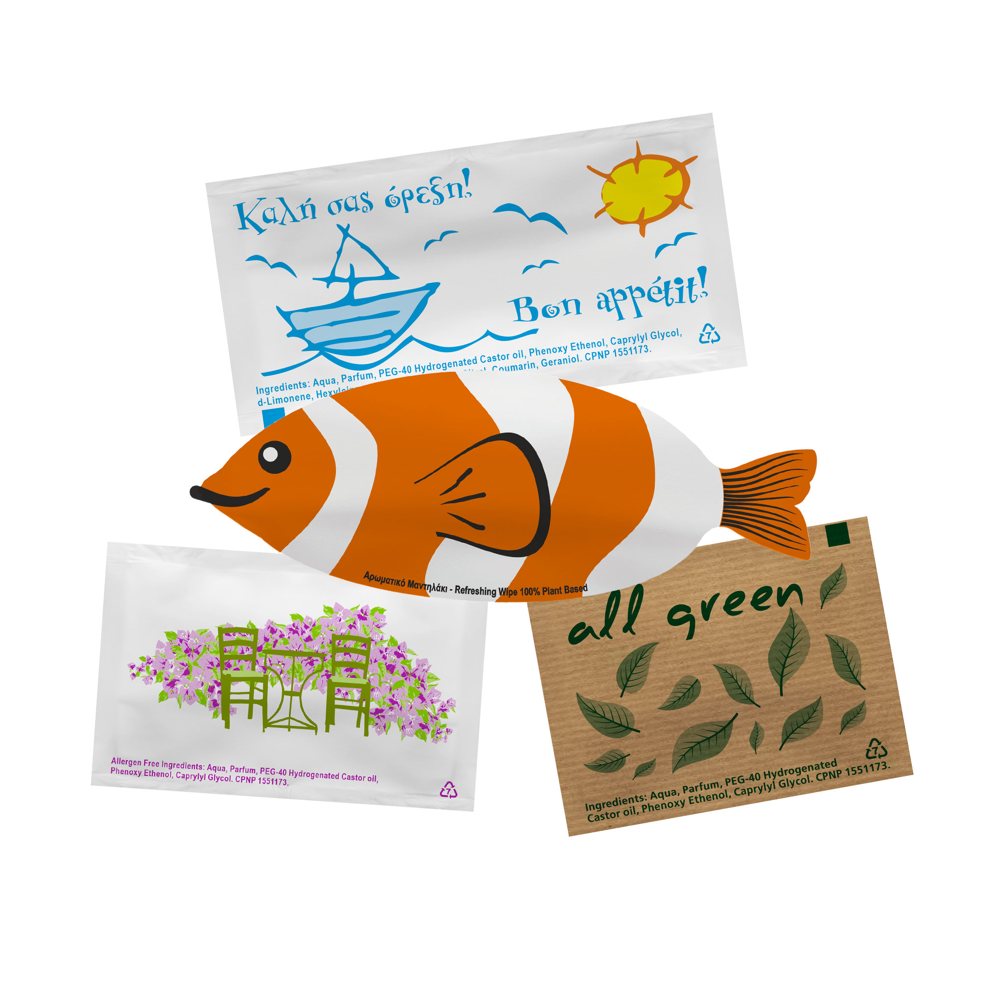 Onze verfrissingsdoekjes worden gedrukt met een ontwerp naar keuze, volledig full-color. Omdat deze verfrissingsdoekjes te bedrukken zijn in een kleine oplage is het perfect voor elk type restaurant. Voor de grotere restaurants, die veel verfrissingsdoekjes verbruiken in het jaar, hebben wij de mogelijkheid om tegen zeer lage prijzen grote aantallen verfrissingsdoekjes te bestellen.