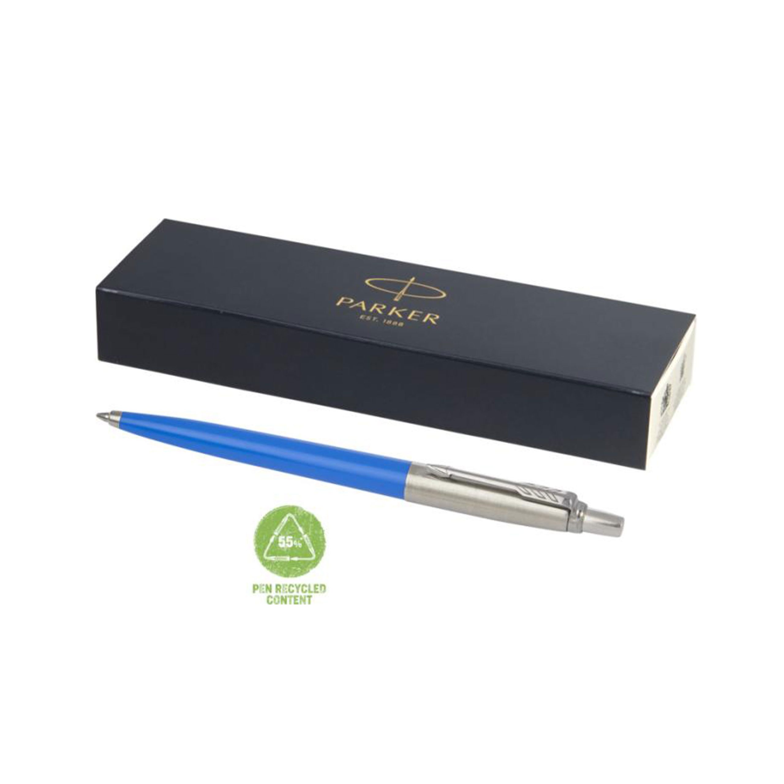 Luxe Parker pennen bedrukken als stijlvol en duurzaam relatiegeschenk? Deze Parker Jotter pennen combineren klasse, schrijfcomfort en milieuvriendelijke materialen in één. Met een krasvrije behuizing van gerecycled plastic en een glanzende afwerking van gerecycled roestvrijstaal, zijn deze luxe pennen een uitstekende keuze voor wie indruk wil maken.