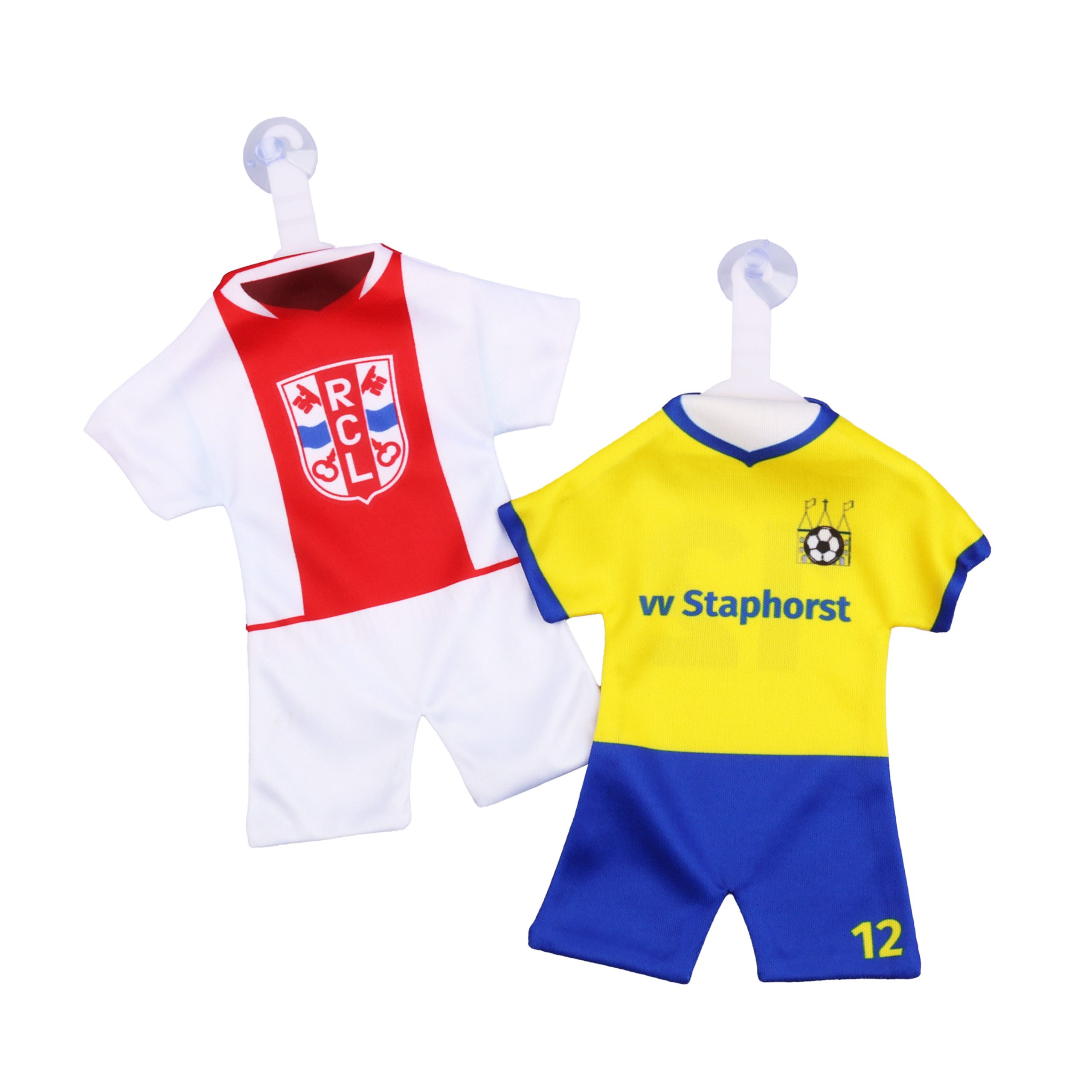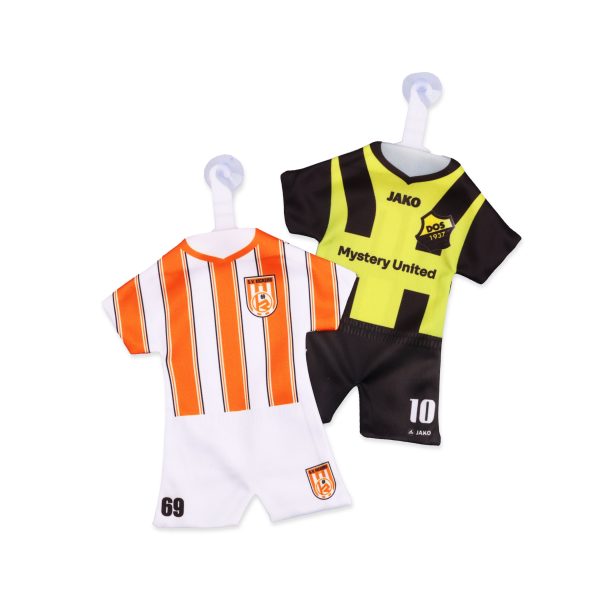 Mini shirt drukken in de clubkleuren van jouw club of verenging? Wij drukken zowel mini tenues als mini shirts met jouw eigen design of met een gratis ontwerp door Joy Reclame. Je bent helemaal vrij in het ontwerp, zo kan je dus niet alleen het clublogo op het shirt zetten maar ook bijvoorbeeld het originele wedstrijdshirt namaken mét clubsponsor. Een mini shirt drukken was nog nooit zo gemakkelijk. Wij drukken mini tenues in kleine oplages voor de laagste prijzen van Nederland. Een goedkoop mini shirt bedrukken met raamhanger? Mini tenues bedrukken, bij ons ben je aan het juiste adres.