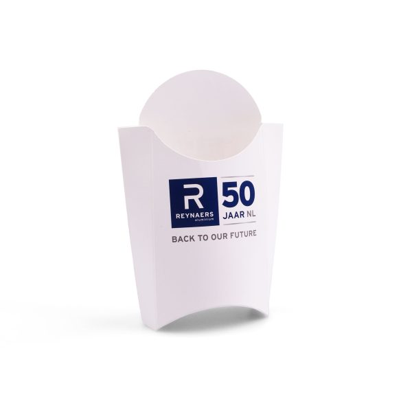 Nog leuker en slimmer is om de patatbakjes volledig te laten personaliseren. Je kunt ze bijvoorbeeld laten bedrukken met de bedrijfsnaam of met het logo van de snackbar of patatkraam. Dat ziet er niet alleen heel mooi en professioneel uit, maar het zorgt ook nog eens voor effectieve reclame. Wanneer mensen anderen door de winkelstraat zien lopen met een bedrukt bakje patat dat herkenbaar is door bedrijfsnaam of logo, levert dat automatisch gratis reclame op!