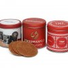 Stroopwafelblikken bedrukken? Op zoek naar een luxe en traditioneel relatiegeschenk voor jouw klanten of medewerkers? Wat dacht je van het bedrukken van luxe stroopwafelblikken! Wij bedrukken stroopwafelblikken full-color rondom inclusief de deksel! Onze stroopwafelblikken hebben een doorsnede van 99 mm en zijn 100 mm hoog. De naad van het blik wordt gefelst en voorzien van een full-color print. Na het printproces voorzien wij het blik van een silver finish look of van een witte lak. De bodem is blank. De romp van het blik en de deksel printen wij full-color helemaal naar wens (de bodem blijft onbedrukt). Dit blik is er speciaal voor gemaakt om stroopwafels in te verpakken maar het blik wordt ook vaak gebruikt als bedrukt snoepblik of als blik voor pepermunt. Waarom stroopwafelblikken bedrukken wij Joy Reclame?