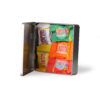 Wij voorzien de blikken van heerlijke Tiny Tony’s met een mix van smaken. De beschikbare smaken kunnen zijn: melk, melk karamel zeezout, melk noga, melk hazelnoot, puur amandel zeezout, donkere melk, puur, donkere melk pretzel, wit en wit framboos knettersuiker.