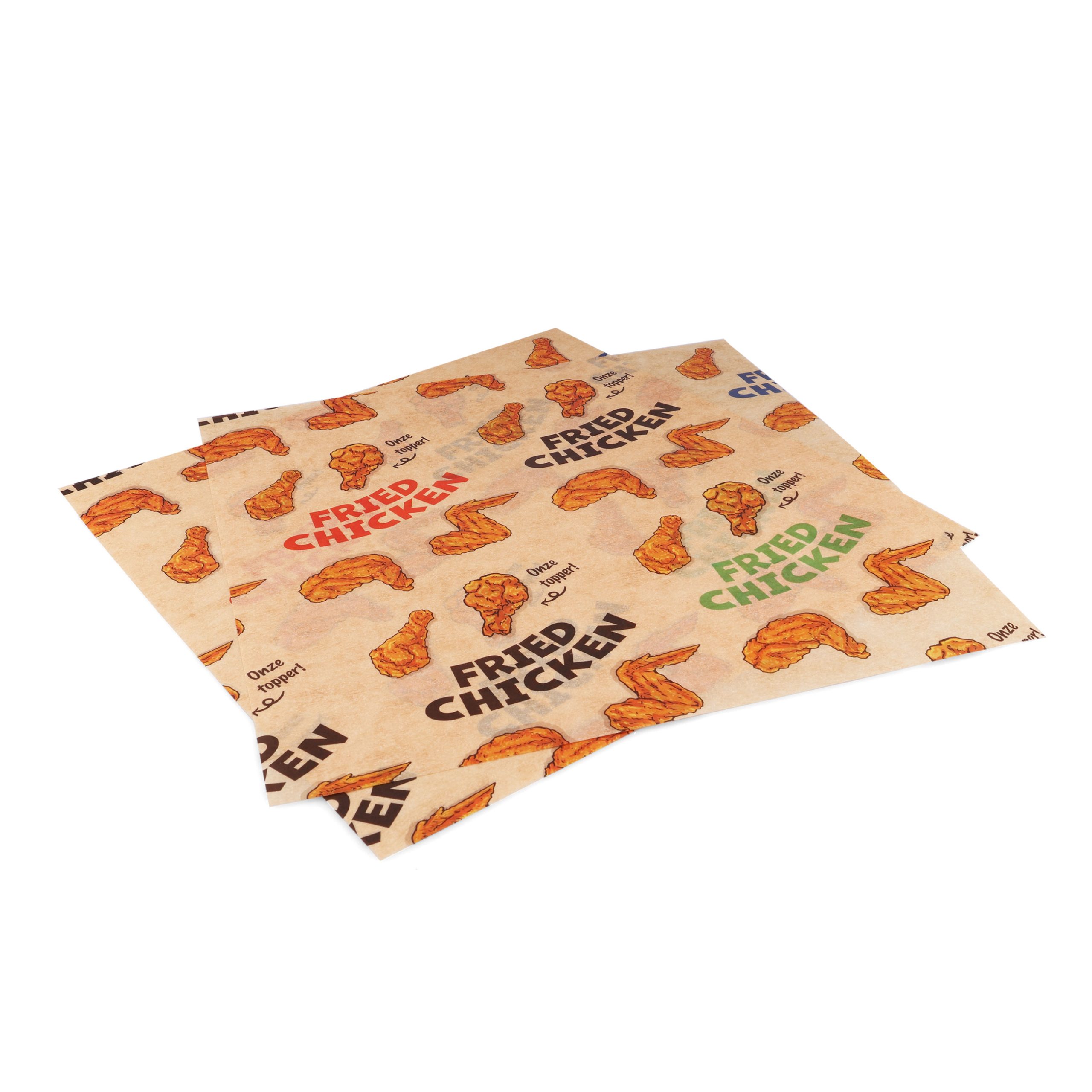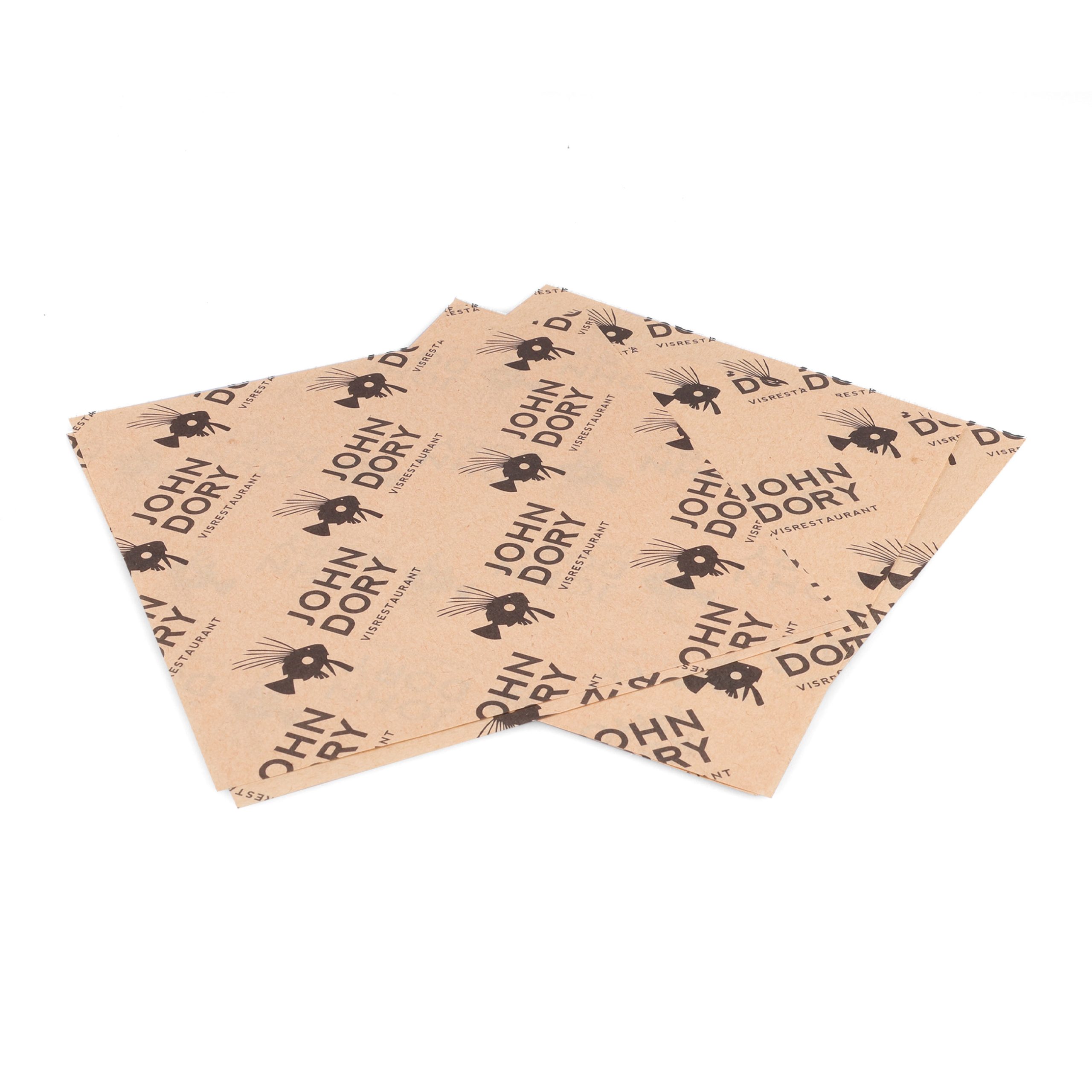 Wij drukken de vetvrije papieren vellen op 42, 43 en 50 g/m² Ersatz papier. Dit papier is wit, licht doorzichtig en glad en kan je gebruiken voor het presenteren of verpakken van zowel vettige als vochtige levensmiddelen. Gebruik de bedrukte vetvrij papiertjes bijvoorbeeld voor het serveren van patat, hamburgers, kebab of bijvoorbeeld voor stroopwafels.