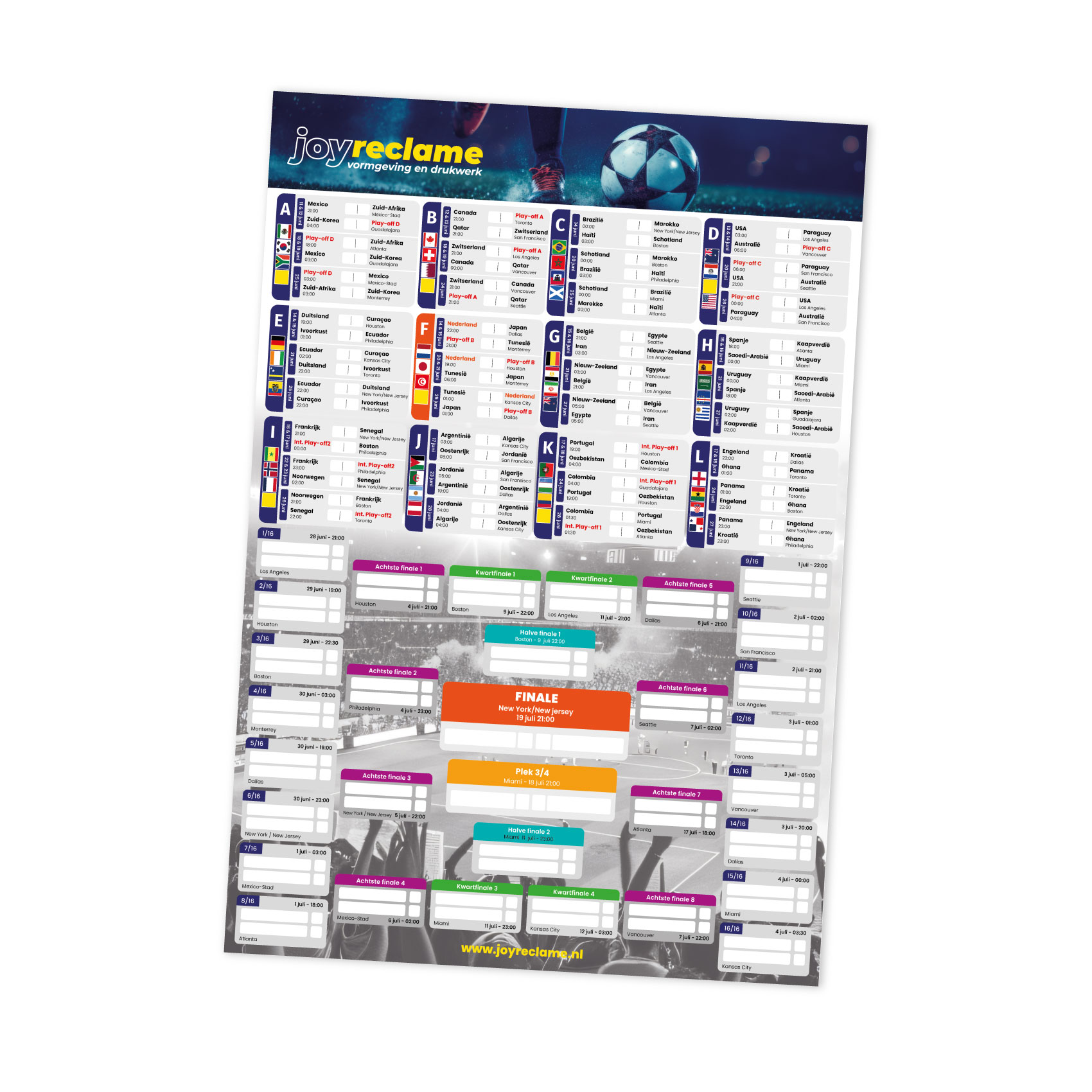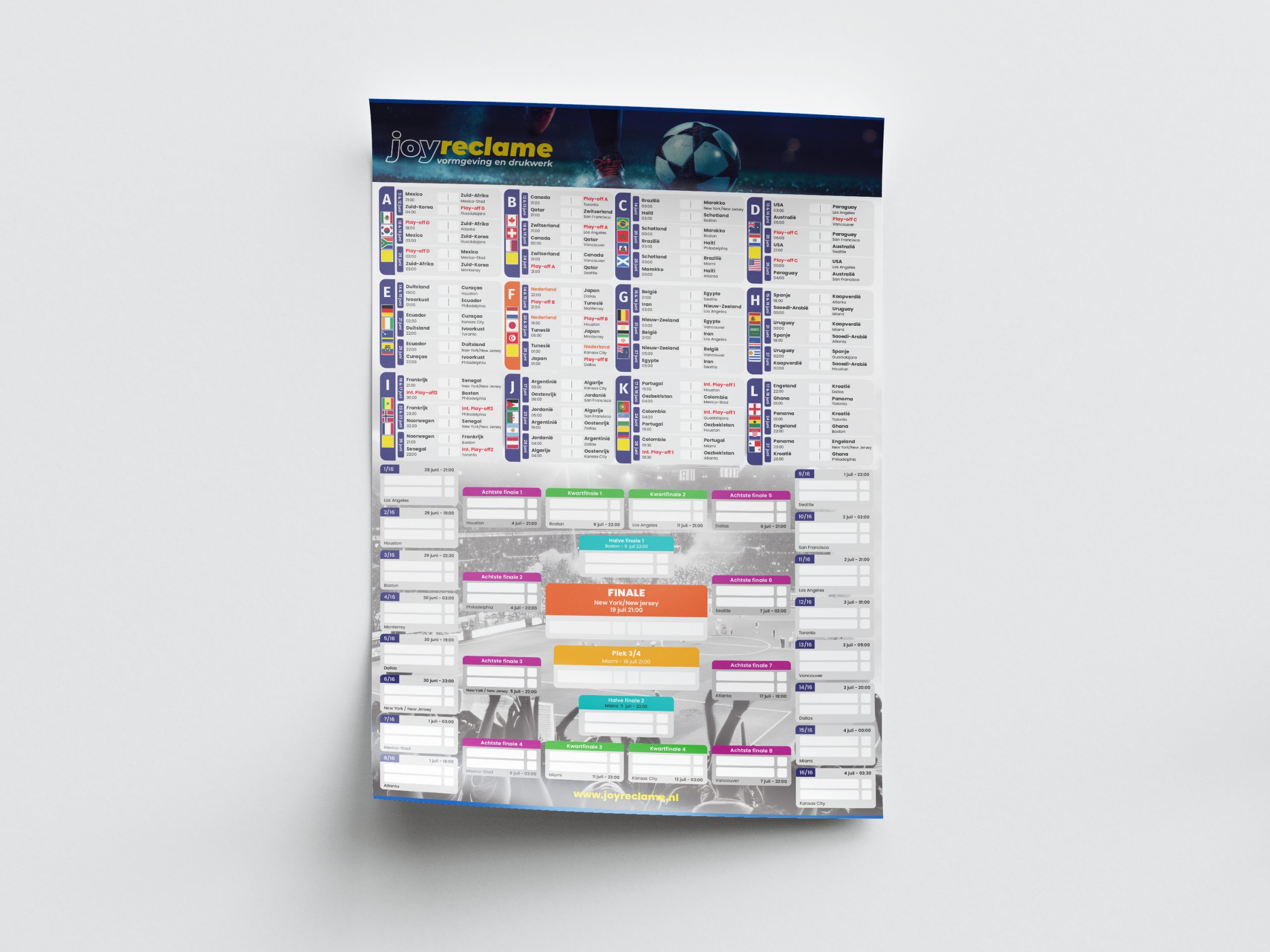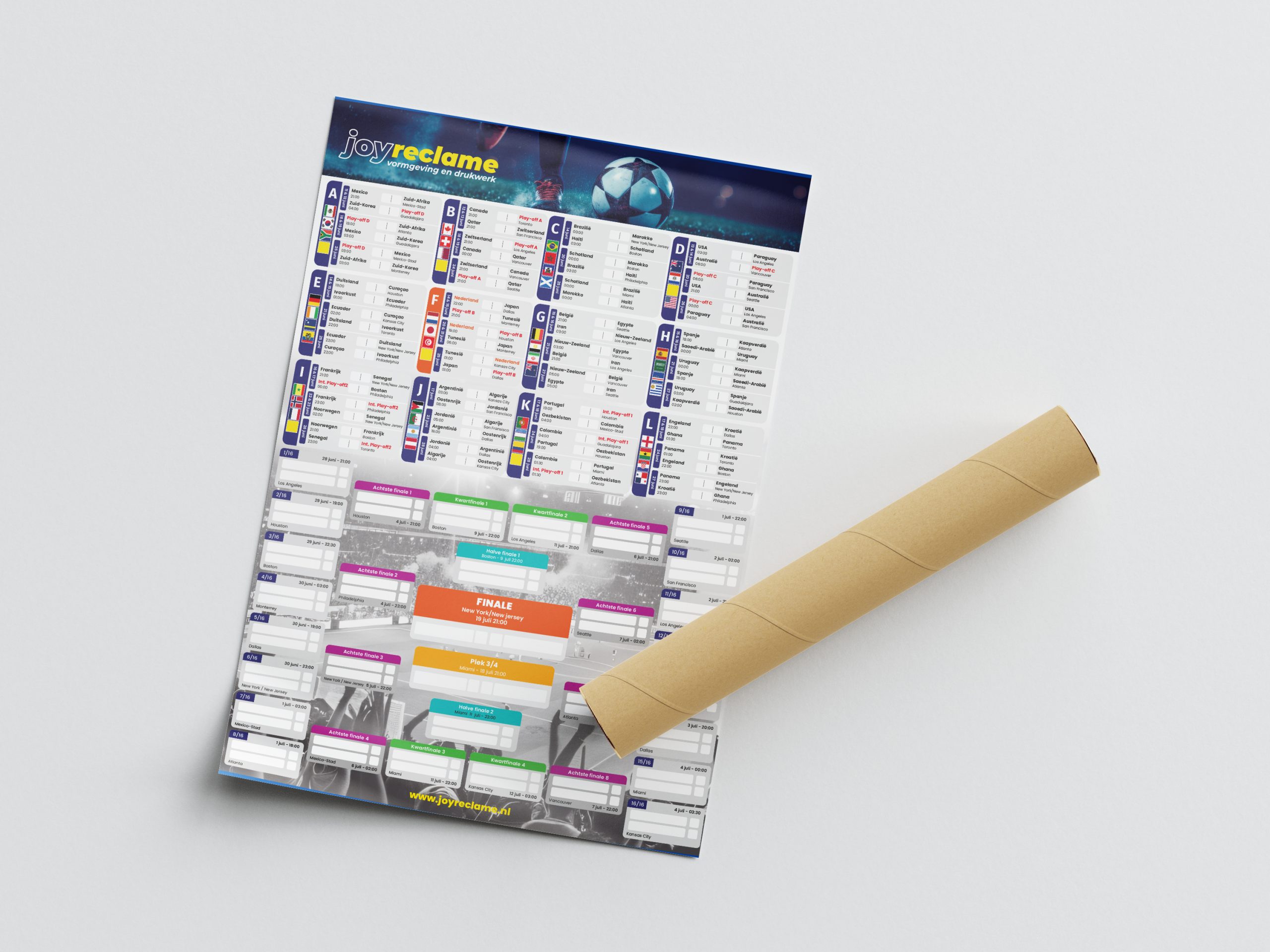 Het drukken van een speelschema poster voor het WK 2026 is een fluitje van een cent en hierom bestel je bij Joy Reclame:
